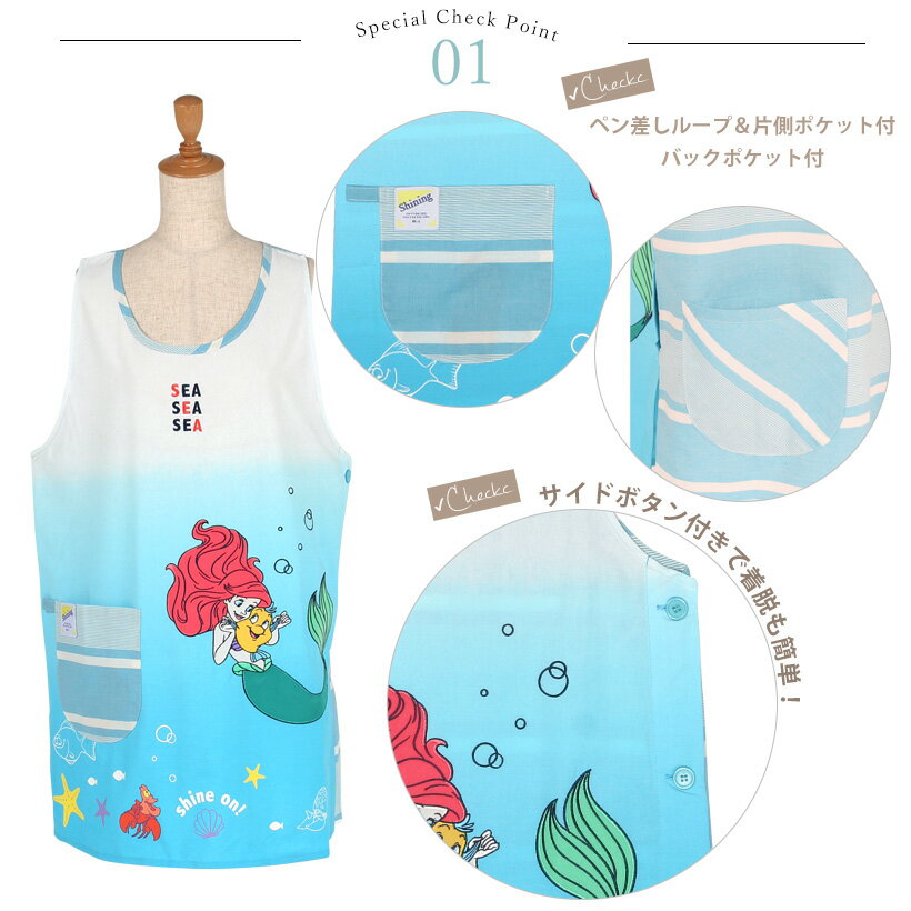 SHOPPING GUIDE 【特徴】 ディズニーアニメ、リトルマーメイドのキャラクター、アリエルがかわいいエプロン。