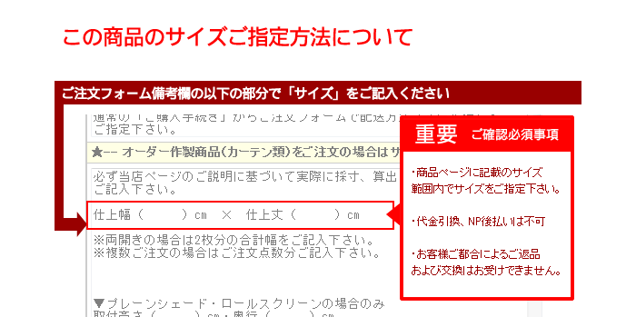 このページでオーダー可能なサイズは商品名部分に記載のサイズ範囲内のサイズです。