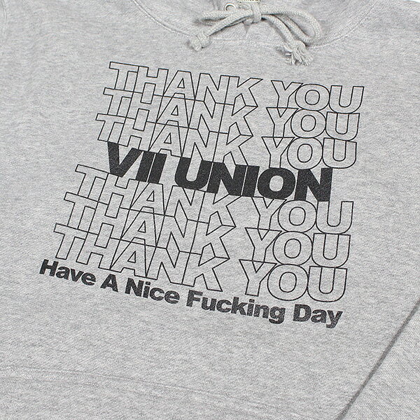 7UNION 7ユニオン 7ユニオン フロントにはアメリカのお土産屋などでショッピングバックとして使われている馴染みのあるThank You Bagからサンプリングしたプルオーバーパーカーです。